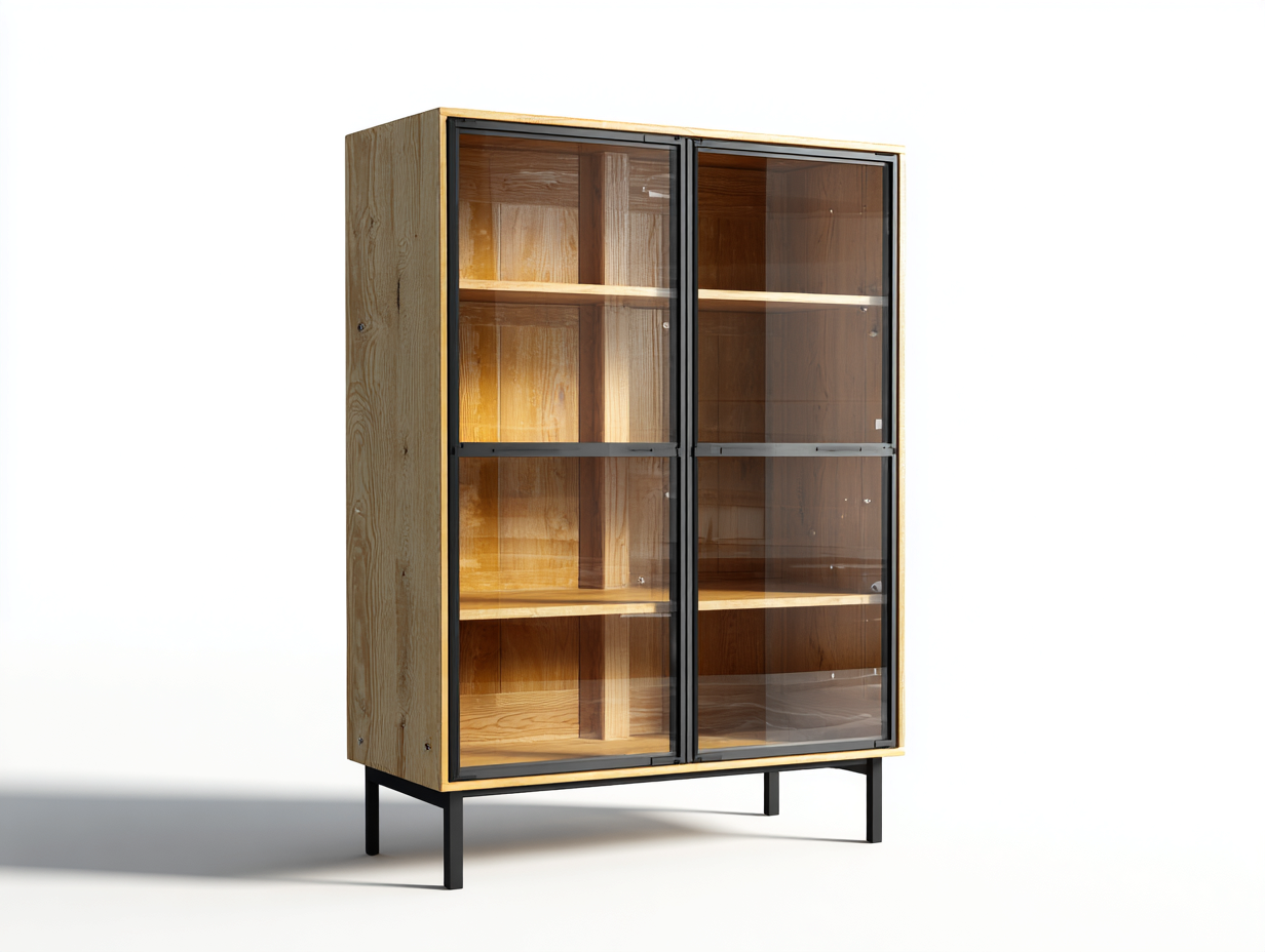 • Display Cabinet Wooden Glass Storage Cabinet 90x40x180 cm - Natural-Black - Modern Living Room Design