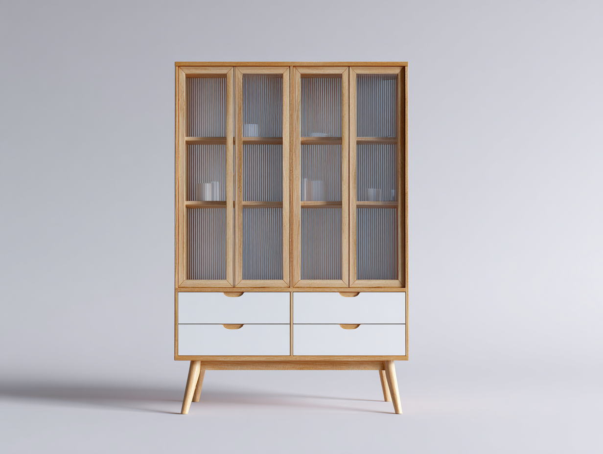 • Display Cabinets Wooden Glass Door Storage 110x40x170 cm - Natural Wood - With Glass Doors - Modern Design