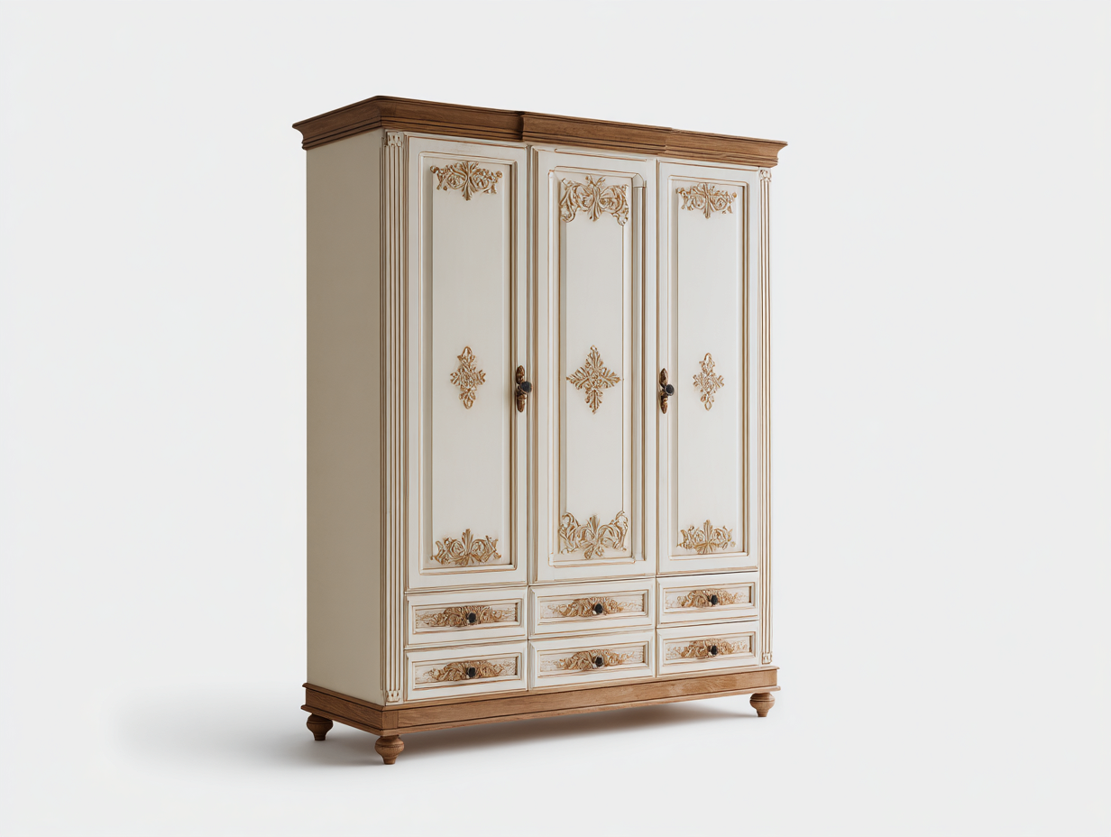 Wardrobes classic wood frame with drawers 160x60x200 cm - white-brown - traditional storage design146.61 AUD