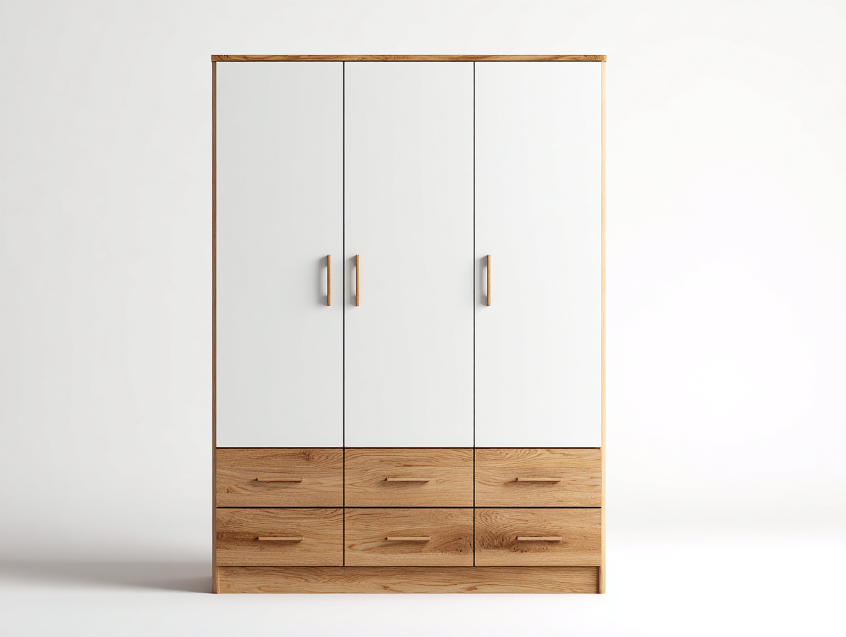 Wardrobe Wooden Storage Cabinet 180x60x200 cm - White-Brown - Modern Bedroom Design149.64 AUD